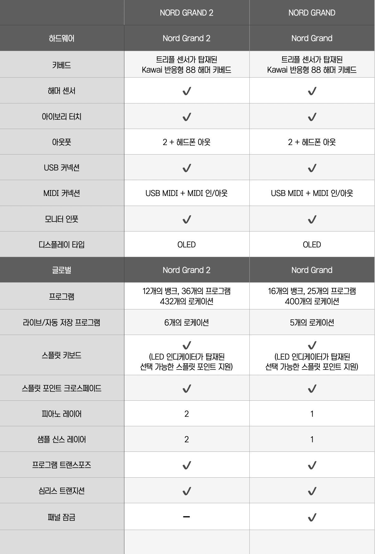 Nord Grand 2´Â ÇØ¸ÓÀÇ ¿òÁ÷ÀÓÀ» Á¤È®ÇÏ°Ô ÃßÀûÇÏ´Â Æ®¸®Çà ¼¾¼°¡ žÀçµÈ, »õ·Ó°í °³¼±µÈ °í°¨µµ Kawai ÇØ¸Ó Űº¸µå¸¦ Ư¡À¸·Î ÇÕ´Ï´Ù. ±âÁ¸ Nord GrandÀÇ »ç¿ë ÆíÀǼºÀº ±×´ë·Î À¯ÁöÇ쵂 ÇÇ¾Æ³ë ¹× ½Å½ºÀÇ µà¾ó ·¹ÀÌ¾î ±â´ÉÀ» ´õÇßÀ¸¸ç, ÆÛÆ÷¸Õ½º¿Í »ç¿îµå Á¦ÀÛÀ» À§ÇØ º¸´Ù ¶Ù¾î³ À¯¿¬¼ºÀ» Á¦°øÇÕ´Ï´Ù. ¶ÇÇÑ, ¿ì¼öÇÑ ¹ë·±½º¿Í ¶Ù¾î³ ¹ÝÀÀ¼ºÀÇ Æ®¸®Çà ¼¾¼ Űº£µå´Â ÇÁ¸®¹Ì¾ö ÇØ¸Ó ¸ÞÄ¿´ÏÁòÀ» žÀçÇØ Àüü ´ÙÀ̳»¹Í ·¹ÀÎÁö¿¡ °ÉÄ£ ÈǸ¢ÇÑ ÄÁÆ®·ÑÀ» ¼±»çÇÕ´Ï´Ù.