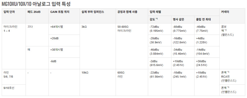 °¢ ¸ð³ë ÀԷ¿¡´Â ÄÞº¸ ÀèÀÌ ÀåÂøµÇ¾î ÀÖÀ¸¸ç MIC ¹× LINE ·¹º§ ½ÅÈ£¸¦ ¸ðµÎ ¼ö½ÅÇÕ´Ï´Ù. ½ºÅ×·¹¿À ÀÔ·Â Áß 2°³¿¡´Â XLR°ú 2°³ÀÇ Æù Ä¿³ØÅͰ¡ ÀåÂøµÇ¾î ÀÖÀ¸¸ç XLRÀº MIC ·¹º§ ½ÅÈ£¸¦ ¼ö½ÅÇϰí 2°³ÀÇ Æù Ä¿³ØÅÍ´Â LINE ·¹º§ ½ÅÈ£¸¦ ¼ö½ÅÇÏ¸ç ¸ð³ë ¶Ç´Â ½ºÅ×·¹¿À·Î »ç¿ëÇÒ ¼ö ÀÖ½À´Ï´Ù. (MG10/10X/10XU/10XUF/12XUK Á¦¿Ü) Ãß°¡ 2°³ ½ºÅ×·¹¿À ä³ÎÀÇ ±â´ÉÀº ¸ðµ¨¿¡ µû¶ó ´Ù¸¨´Ï´Ù. MG20/20XUÀÇ °æ¿ì XLRÀº MIC ·¹º§ ½ÅÈ£¸¦ ¼ö½ÅÇϰí 2°³ÀÇ RCA Ä¿³ØÅÍ´Â LINE ·¹º§ ½ÅÈ£¸¦ ¼ö½ÅÇÏ¸ç ¸ð³ë ¶Ç´Â ½ºÅ×·¹¿À·Î »ç¿ëÇÒ ¼ö ÀÖ½À´Ï´Ù. MG12/12X/12XU ¹× MG16/16X/16XUÀÇ °æ¿ì 2°³ÀÇ Æù Ä¿³ØÅͰ¡ LINE ·¹º§ ½ÅÈ£¸¦ ½ºÅ×·¹¿À·Î ¼ö½ÅÇÕ´Ï´Ù. ¶ÇÇÑ °¢ ½ºÅ×·¹¿À ä³Î¿¡´Â 2TR ÀÔ·Â(RCA Ä¿³ØÅÍ)ÀÌ ÀÖÀ¸¸ç CD¿Í °°Àº ¿ÜºÎ ¿Àµð¿À ¼Ò½º¿¡¼­ µ¶¸³ÀûÀÎ ÀÔ·ÂÀ¸·Î »ç¿ëÇÒ ¼ö ÀÖ½À´Ï´Ù.MG10/10X/10XU/10XUF ¹× MG12XUK¿¡´Â LINE ·¹º§À» ¼ö¿ëÇÏ´Â ÇÑ ½ÖÀÇ Æù ÀèÀÌ ÀÖ´Â Ãß°¡ ½ºÅ×·¹¿À ä³ÎÀÌ ÀåÂøµÇ¾î ÀÖ½À´Ï´Ù.XU ¸ðµ¨ÀÇ °æ¿ì USB¸¦ ÅëÇØ Àü¼ÛµÇ´Â ¸ðµç ¼ö½Å ¼Ò½º¸¦ ½ºÅ×·¹¿À ä³Î Áß Çϳª¿¡ ÇÒ´çÇÒ ¼ö ÀÖ½À´Ï´Ù.MG ½Ã¸®Áî ¹Í½Ì Äֿܼ¡´Â ±âº» ½ºÅ×·¹¿À Ãâ·Â(XLR L/R, TRS Æù L/R) ¿Ü¿¡µµ GROUP OUT(TRS Æù), AUX/FX OUT(TRS Æù), MONITOR OUT(TRS Æù L/R), HEADPHONE OUT(½ºÅ×·¹¿À Æù) Ä¿³ØÅ͸¦ Æ÷ÇÔÇÑ Æ÷°ýÀûÀÎ Ãâ·Â Ä¿³ØÅͰ¡ ÀåÂøµÇ¾î ¸ð´ÏÅ͸µÀ̳ª ¸¶½ºÅ͸µ°ú °°Àº ƯÁ¤ ¾ÖÇø®ÄÉÀ̼ǿ¡ ¸Â°Ô ¸¶½ºÅÍ Ãâ·ÂÀ»
