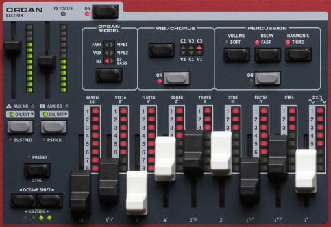 ¿À¸£°£ ¼½¼Ç¿¡´Â ¼ö»ó °æ·Â¿¡ ºû³ª´Â NordÀÇ »ó¡ÀûÀÎ B3 Tonewheel /B3 ÅæÈÙ/, B3 Bass /B3 º£À̽º/, Ŭ·¡½Ä Vox /º¹½º/ & Farfisa /ÆÄÇÇ»ç/ ½Ã¹Ä·¹À̼ǰú µÎ °³ÀÇ ÆÄÀÌÇÁ ¿À¸£°£ ¸ðµ¨ÀÌ Æ÷ÇԵ˴ϴÙ.